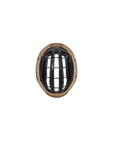 Cuando un casco recibe un impacto, su trabajo es disipar la energía del mismo. El enfoque convencional a la hora de diseñar cascos es que más espuma de foam (EPS) significa una mejor gestión de la energía. Hemos revolucionado el diseño de los cascos de ciclismo innovando más allá de la espuma. Los "cables" de fibra de aramida atraviesan el casco y se anclan a los paneles laterales de fibra de carbono. En caso de impacto, la tecnología AirCage* funciona como un puente de suspensión y está diseñada para distribuir las fuerzas localizadas por todo el casco.
