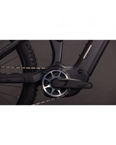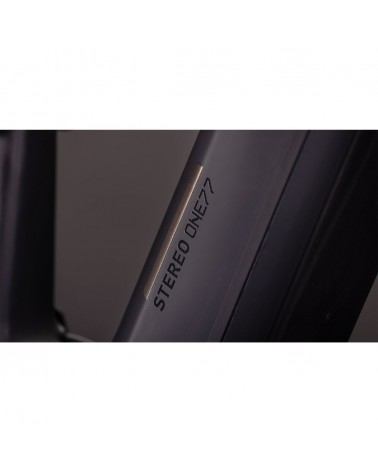 El cuadro de la Cube Stereo Hybrid ONE77 HPC, con 170 mm de recorrido delantero y trasero y una configuración de ruedas mullet (29" delante y 27,5" detrás), es todo lo que necesitas para disfrutar de grandes jornadas en montaña. Como en todos los diseños de CUBE, los detalles marcan la diferencia. El cableado interno proporciona una estética limpia y moderna, mientras que la dirección con ángulo ajustable permite adaptar el manejo a tu estilo de conducción. La batería Bosch PowerTube de 800 Wh se integra discretamente en el tubo diagonal de carbono, justo encima del motor Bosch Performance CX. El triángulo trasero de aluminio con puntera UDH asegura resistencia y compatibilidad futura, y el protector de cadena de montaje directo garantiza durabilidad en los tramos más exigentes.