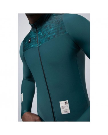 Esta versión actualiza el diseño con un patrón renovado, donde el corte frontal más alto aporta una estética más estilizada. Las mangas, ahora en tejido sólido, junto con las zonas en poliamida, mejoran el ajuste y la estabilidad durante el pedaleo. Su estructura técnica proporciona un aislamiento ligero, ideal para entrenamientos y salidas en días de temperaturas frescas, asegurando a la vez una transpirabilidad óptima que evita el sobrecalentamiento. Los paneles mesh en las axilas añaden una ventilación extra, favoreciendo la evacuación del calor residual y manteniendo una sensación de frescura constante.