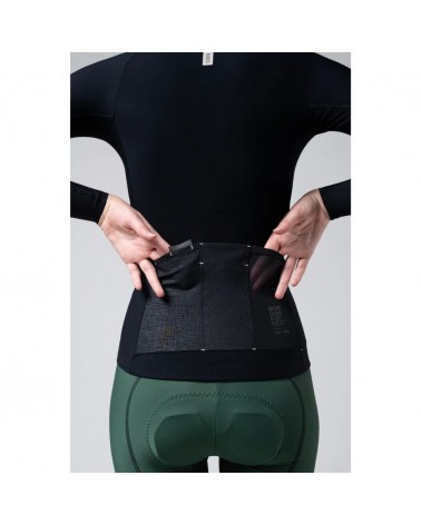 En la parte trasera se instalan 3 bolsillos. 2 de ellos con nuestro sistema patentado GRS (Gobik Retention System) que evita la pérdida de nuestras pertenencias. El derecho de rejilla, perfecto para evitar la condensación del sudor de nuestro smartphone. Se agrega un bolsillo adicional de rejilla en la parte lateral, perfecto para guardar productos de nutrición o sus envoltorios.