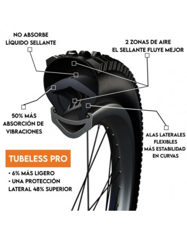 Tannus Tubeless es el mousse tubeless más avanzado del mercado. Lleva al siguiente nivel tus salidas en bici gracias a su diseño modular, encuentra el equilibrio perfecto entre protección de llanta, ligereza y comodidad.