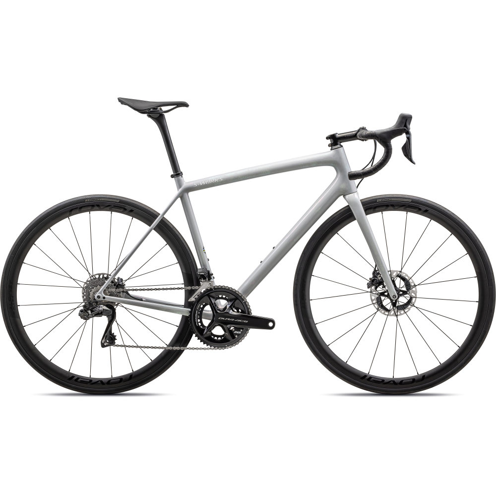 - Cuadro: S-Works Aethos FACT 12r Carbon, Rider First Engineered™, BB roscado, solo cableado electrónico, 12x142mm thru-axle, flat-mount disc